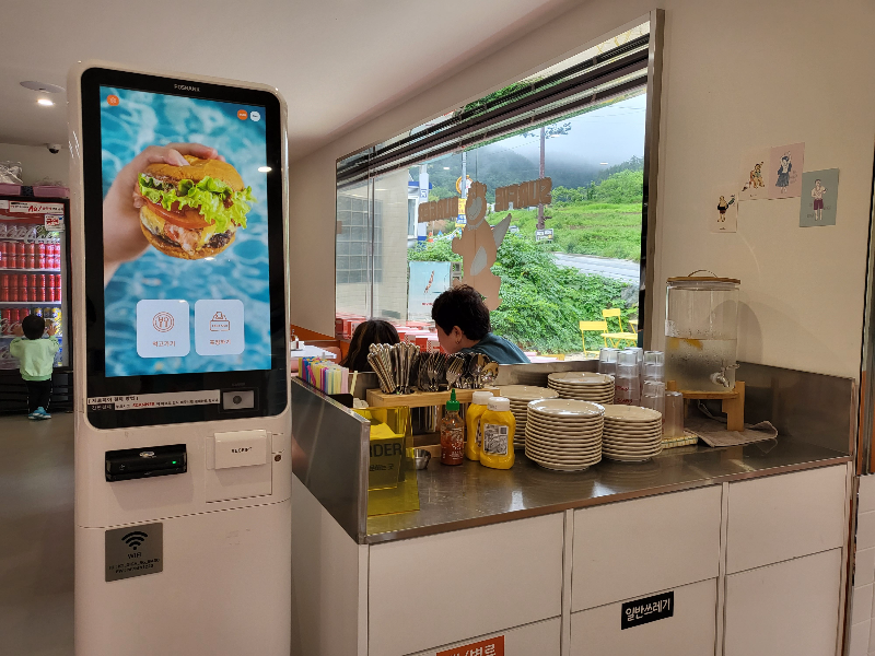 우측으로는 버거를 주문 할 수 있는 키오스크가 있고