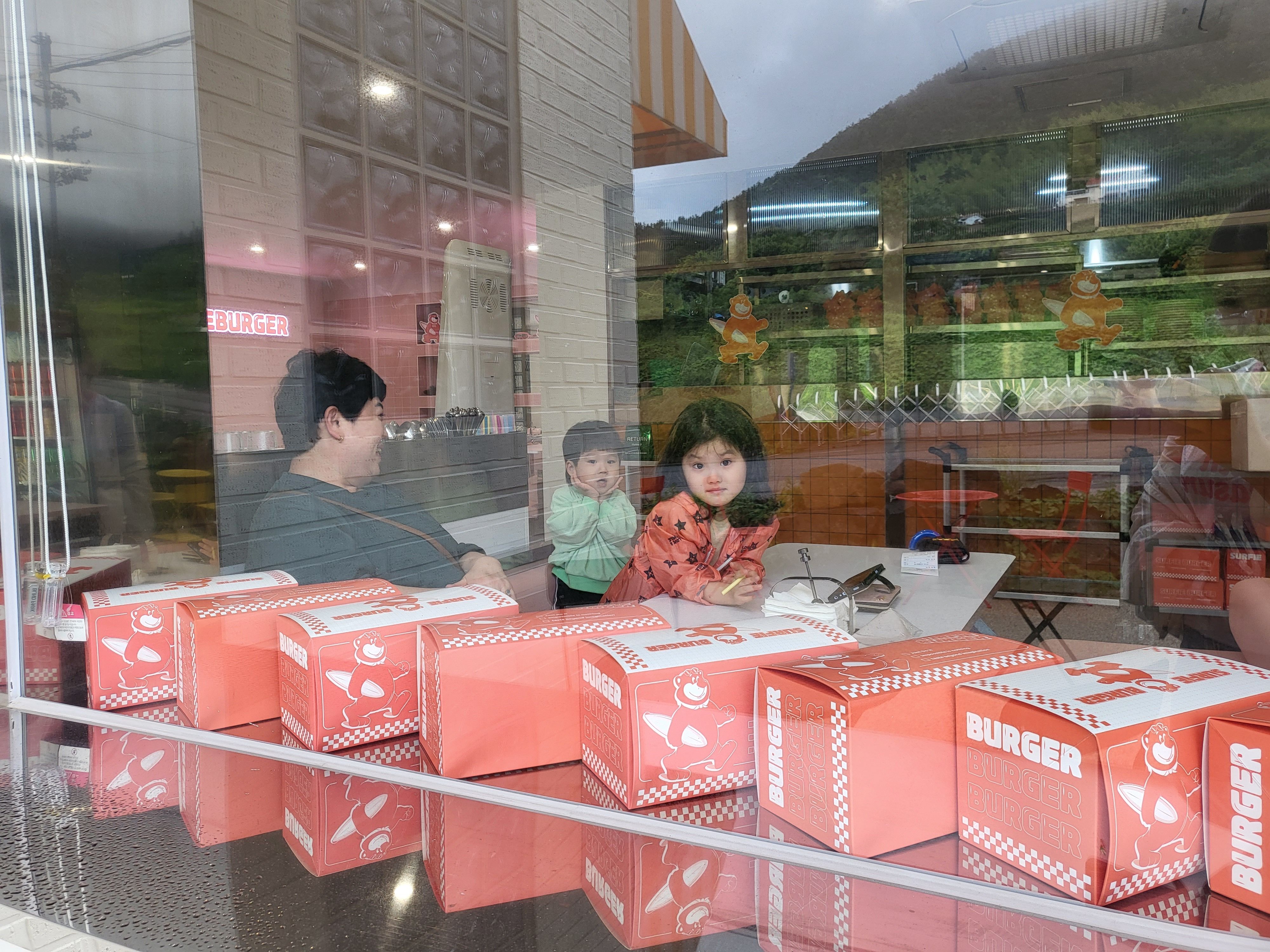 화이트 오렌지톤의 상큼한 서피버거가 저희를 맞아주네요ㅠ
