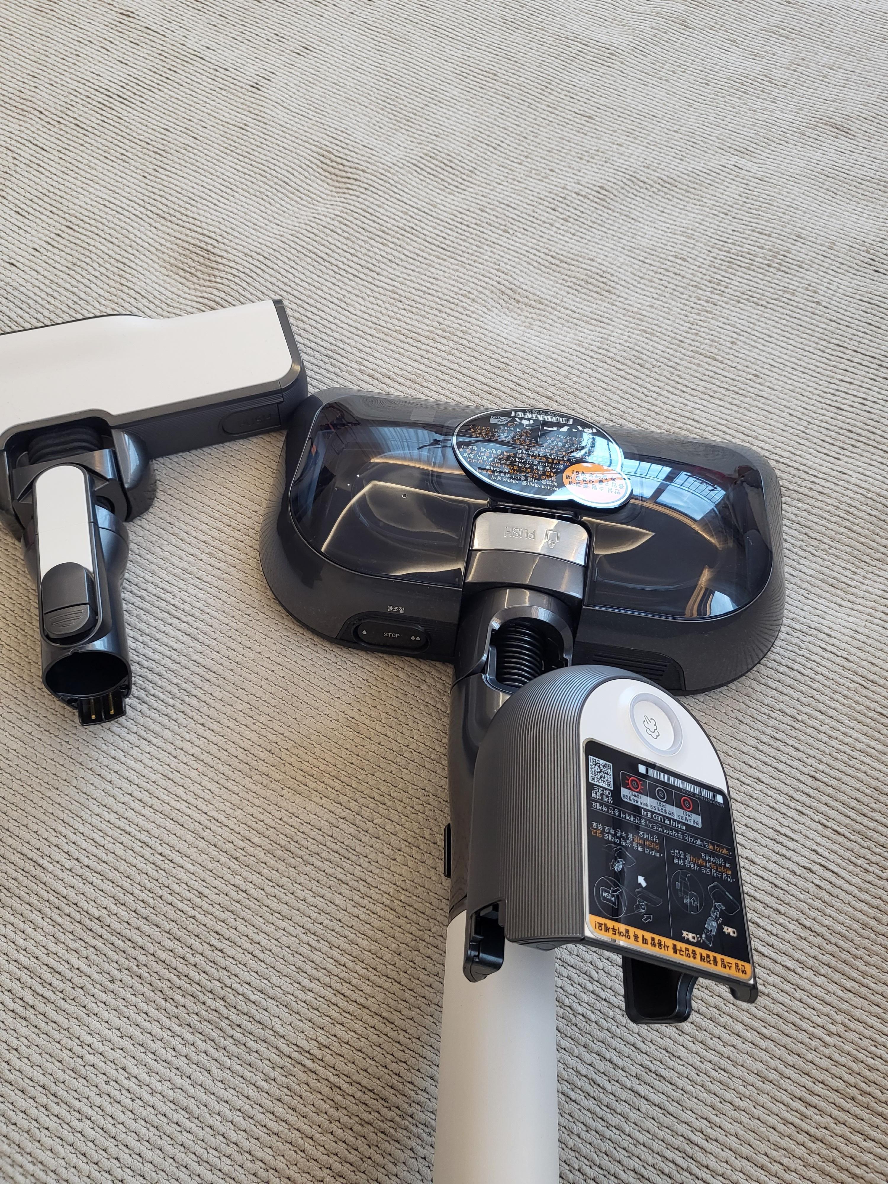 요렇게 일반 청소기 헤드를 분리 시키고 물걸레 헤드를 청소기 본체에 연결하고