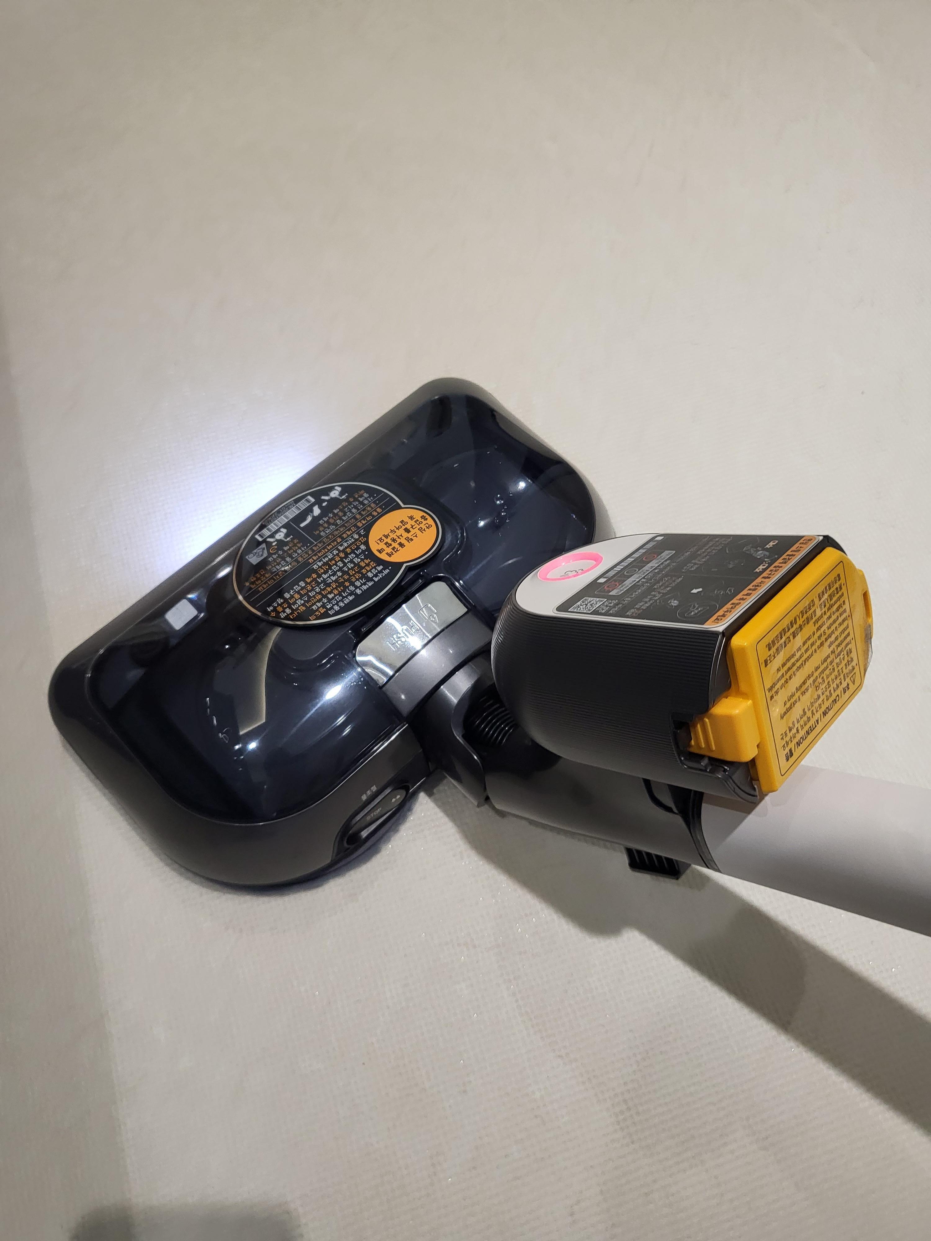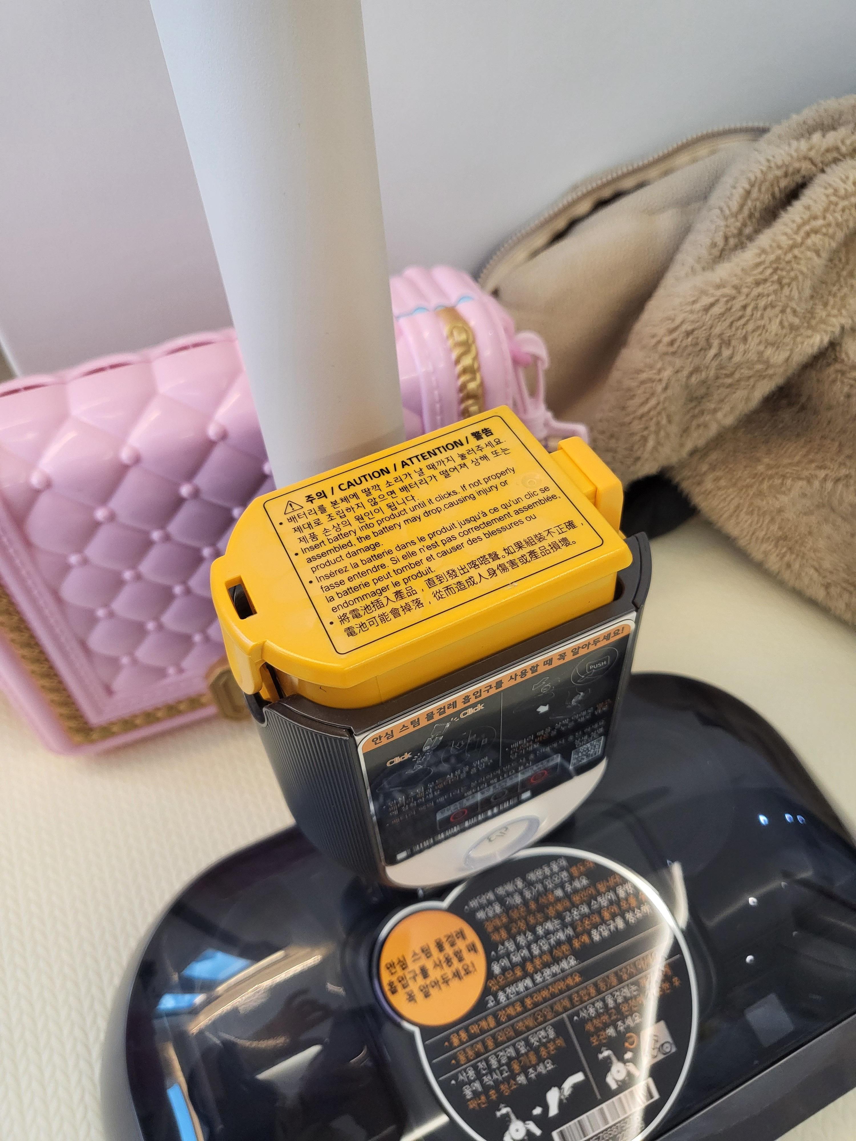 요렇게 본체에 늘 충전해두는 보조배터리(노랑색)를 스팀발생기에 부착하면