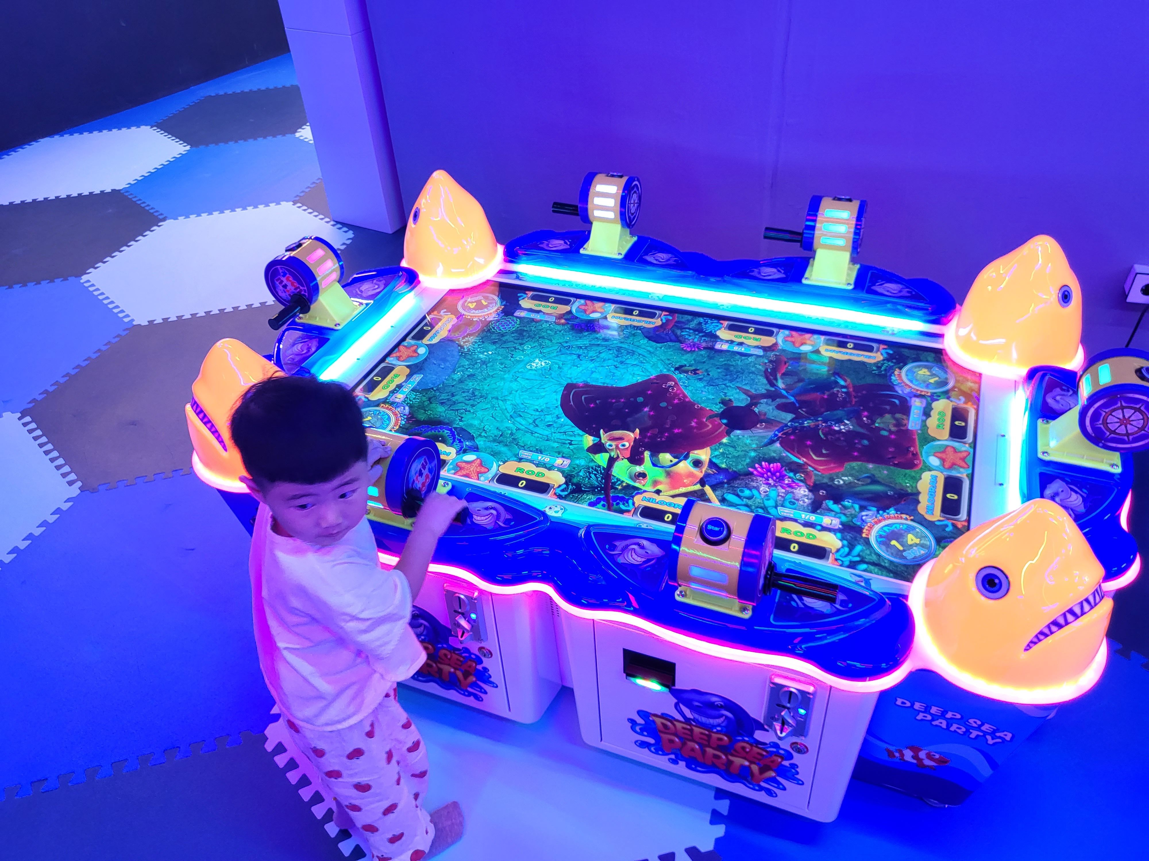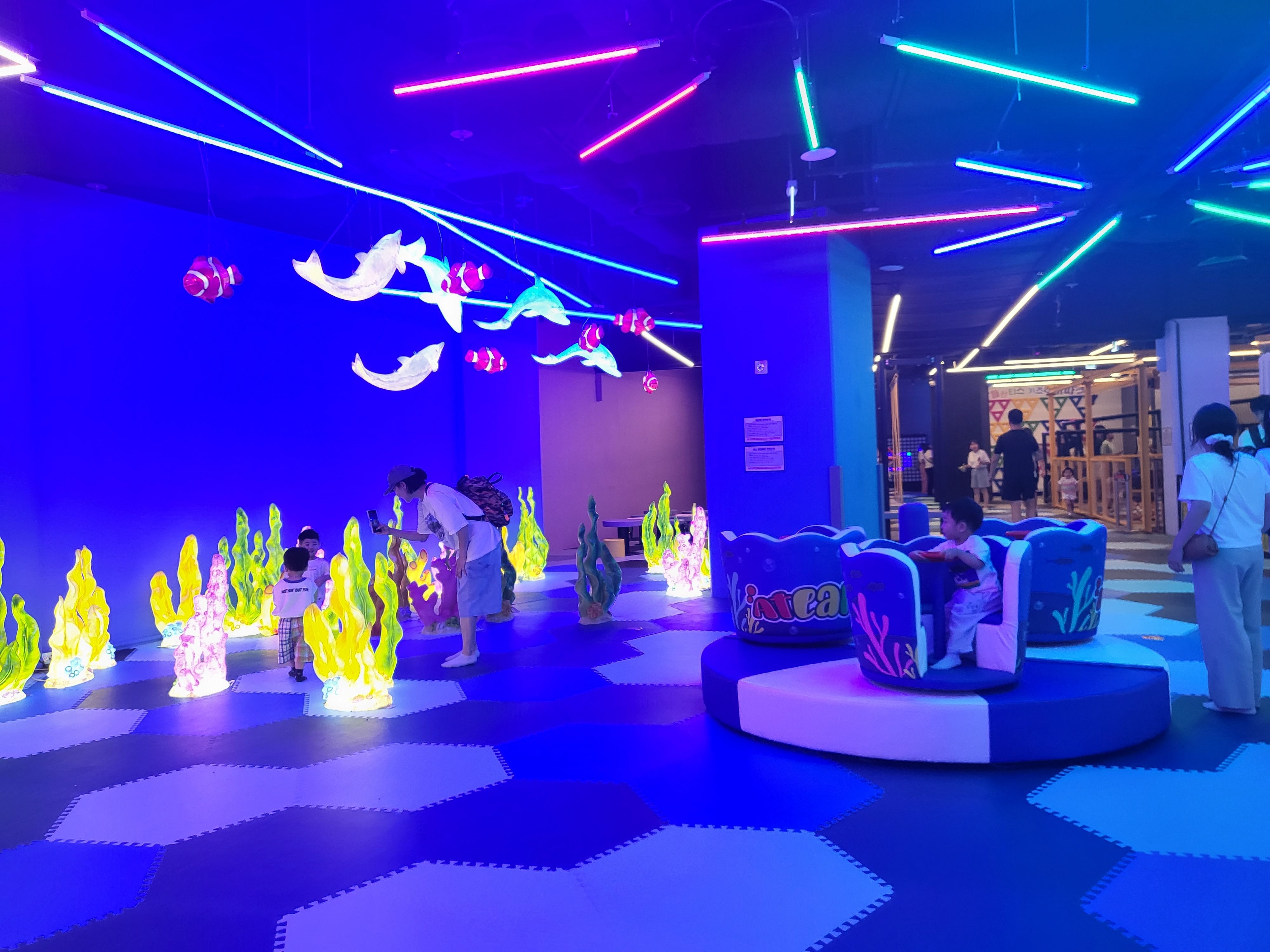 신상 키즈까페 답게 파란 바다같은 조명아래 산호초 조명이 빛나고 있고요